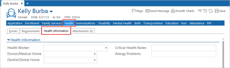 - Click the Health Information