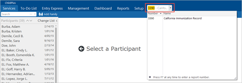 - In the Enter Report Number field to the upper right of the screen, type “3390” and press Enter.
