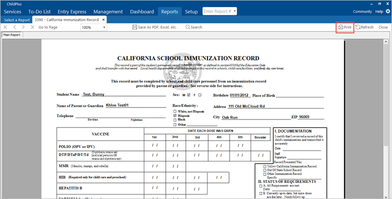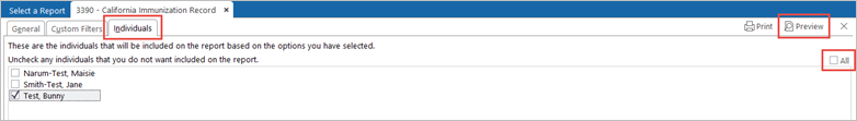 - Select the child(ren) for whom you will print the records. From this tab only, click Preview.