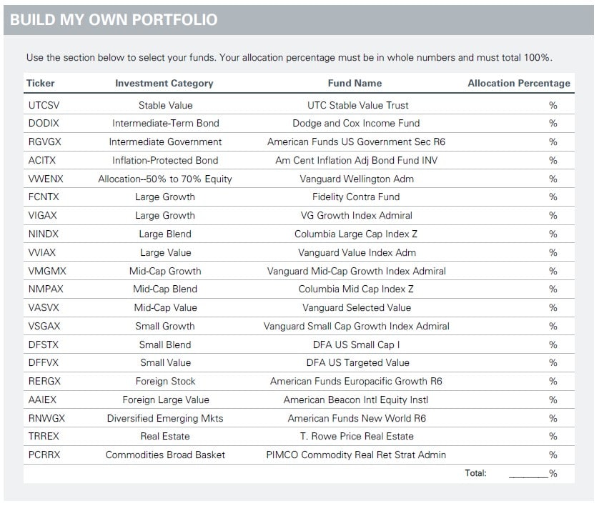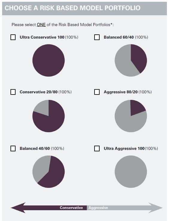Once a plan type is selected, a portfolio needs to be selected or created. Unified Trust provides multiples portfolios as well as the option to create your own portfolio. Only one portfolio can be selected.
